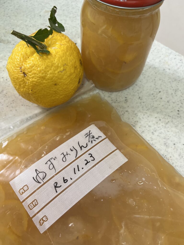 ゆずのシロップは、youtubeを参考にして作りました。半分は、冷凍しておきます。