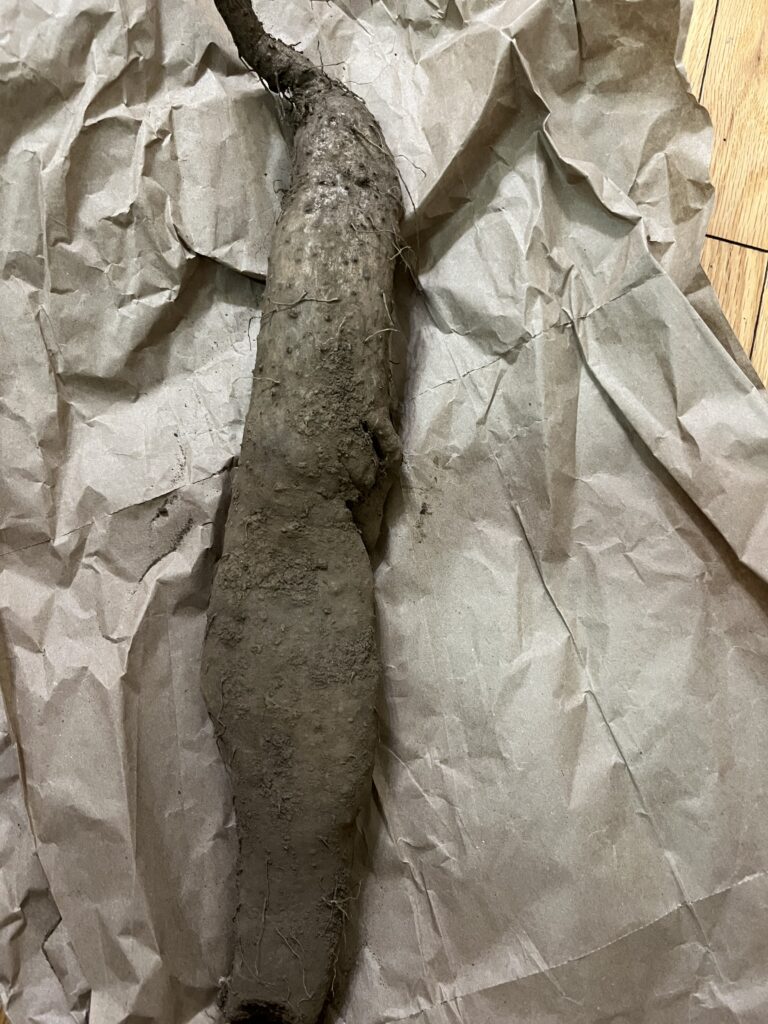山芋も収穫。下に深く伸びると収穫が大変なので、トタンを土中に埋め込んで、その上に種芋を植えました。おかげで、掘り出すのは楽でした。写真を撮り忘れましたが、皮を剥くととても白くて綺麗な芋でした。すりおろして、だし汁を加えてトロロにして食べました。青臭くなくうま味が強く、爽やかな味でした。熱々の白米にかけて食べると、最高に美味しかったです。