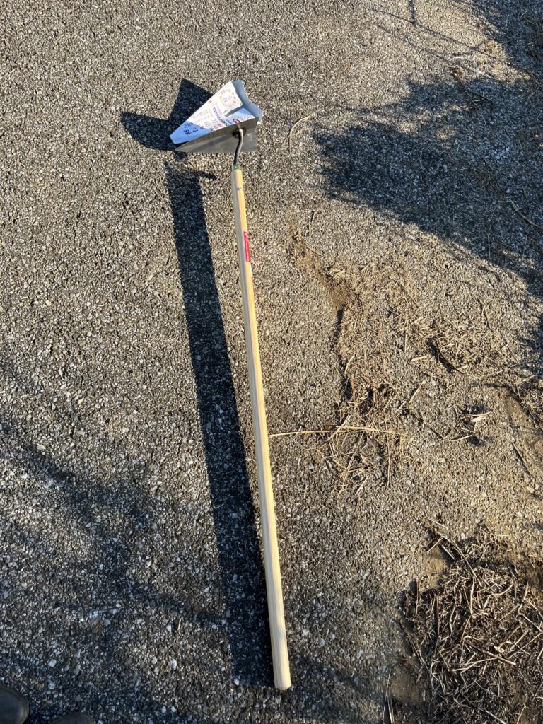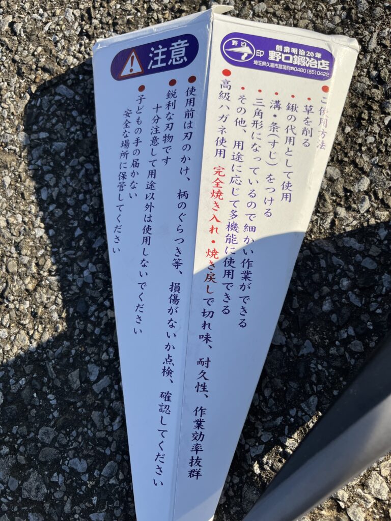 敷地の際などの狭い場所は、『野口式万能両刃鎌』を使用しました。先が三角形になっているので、細かい作業もできます。