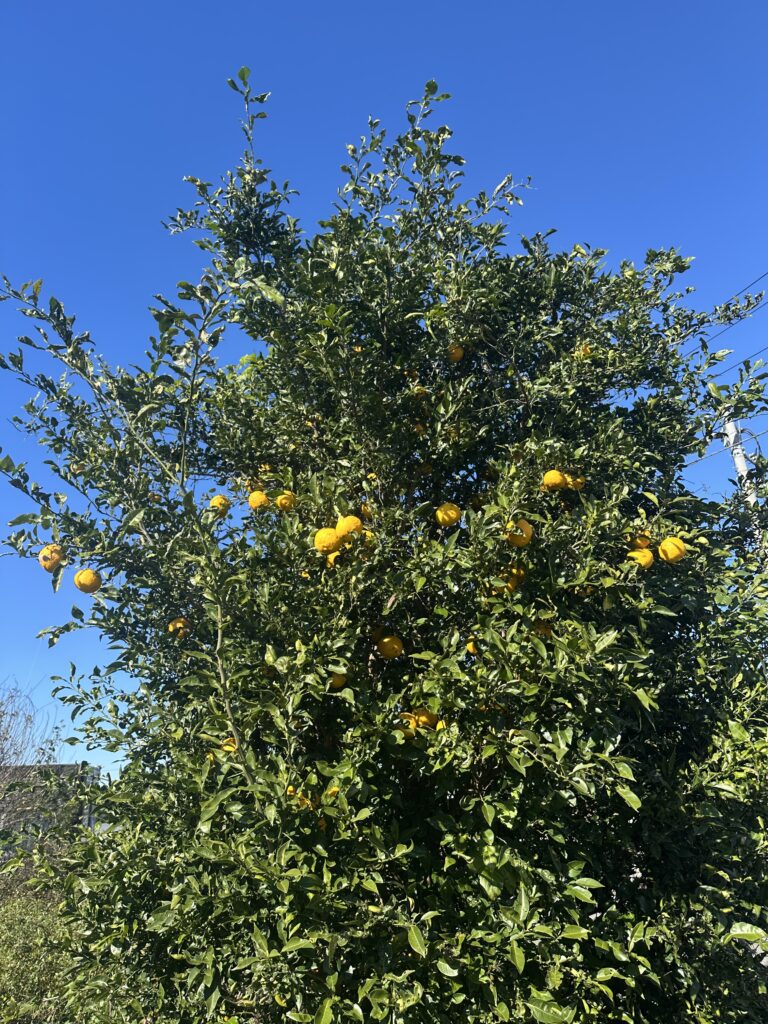 ゆずがたくさんなったので、収穫してシロップを作りました。200個以上は、採れました。木の背丈が高くなり過ぎて、収穫が大変。長いハサミを使いました。なかなか便利です。でも、この葉が枯れたら、上の方をカットします。2024年11月23日、24日
